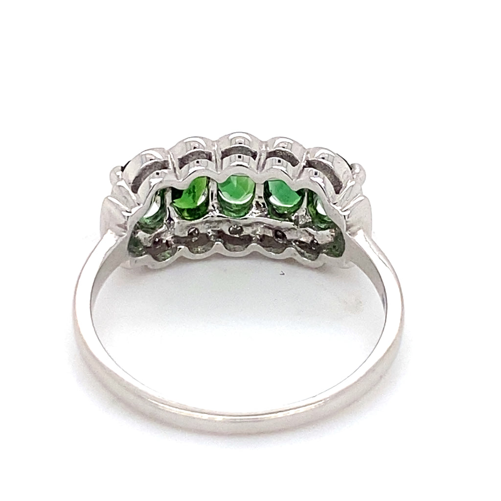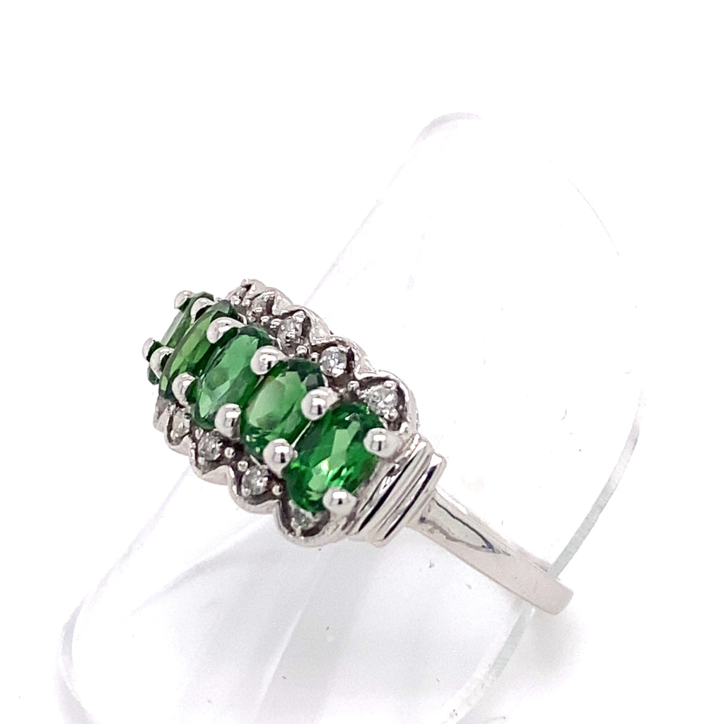 Pre-owned 9ct white gold hallmarked cluster dress ring set with 5 Chrome Diopside central stones with 2 outer rows each set with 5 Diamonds