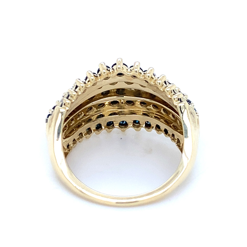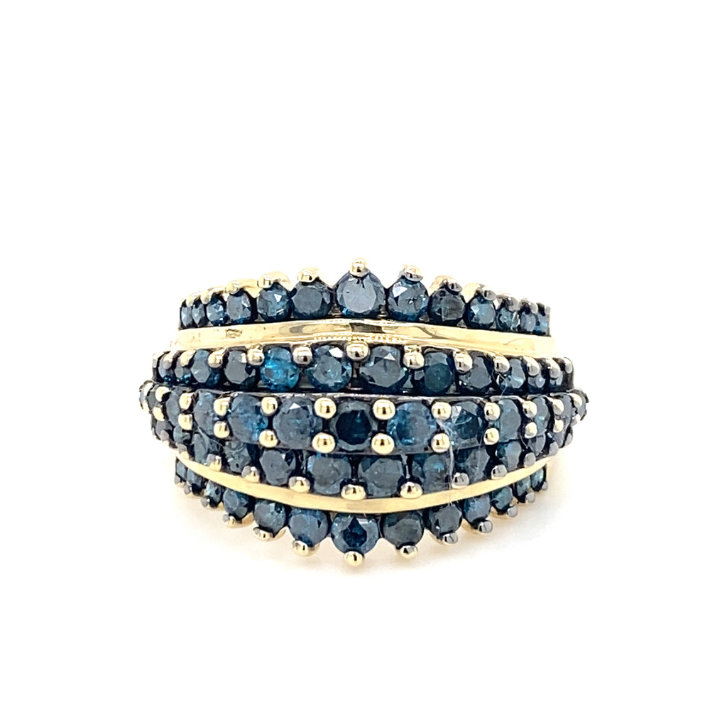 Pre-owned 9ct gold hallmarked 5 row dress ring set with 'blue' Diamonds (treated)