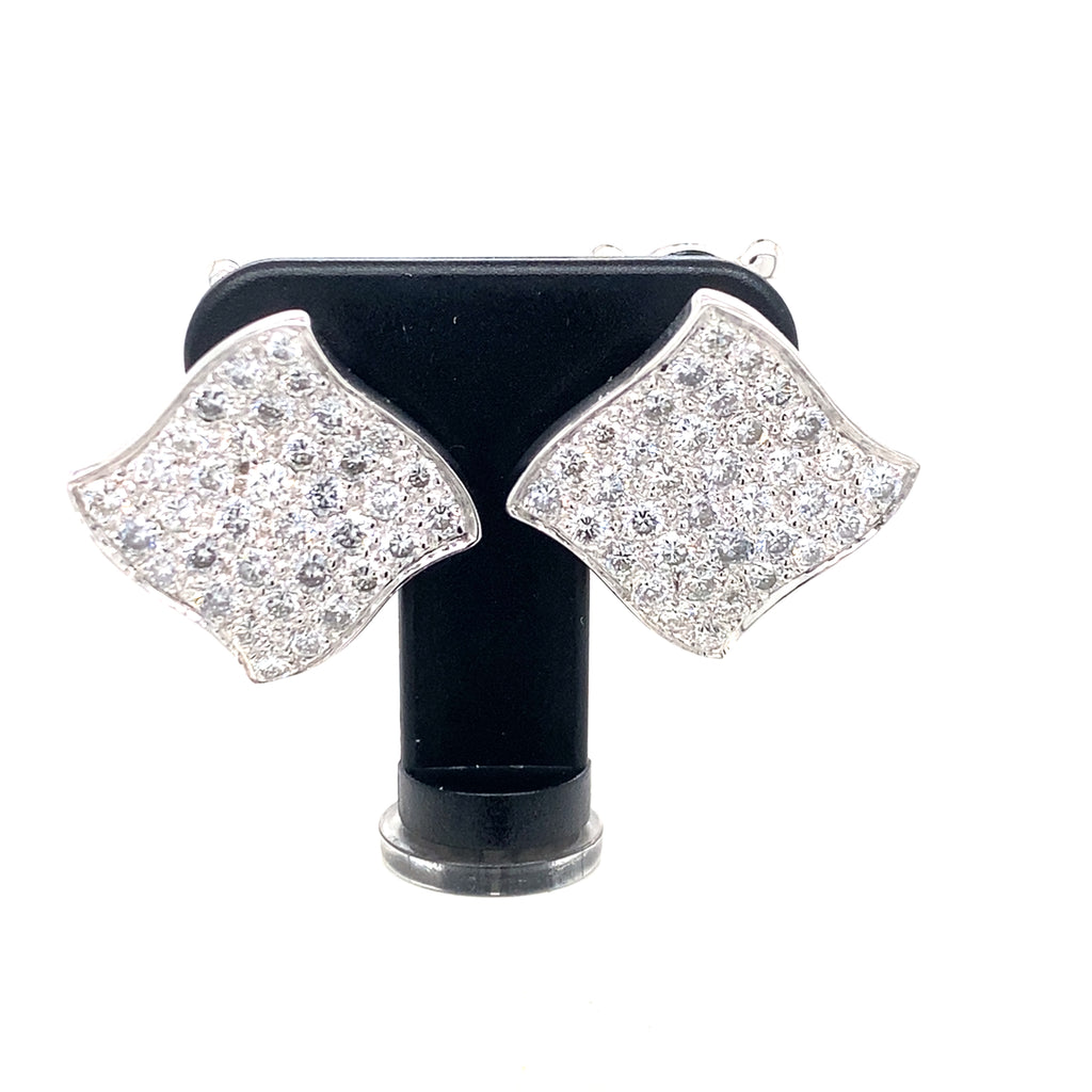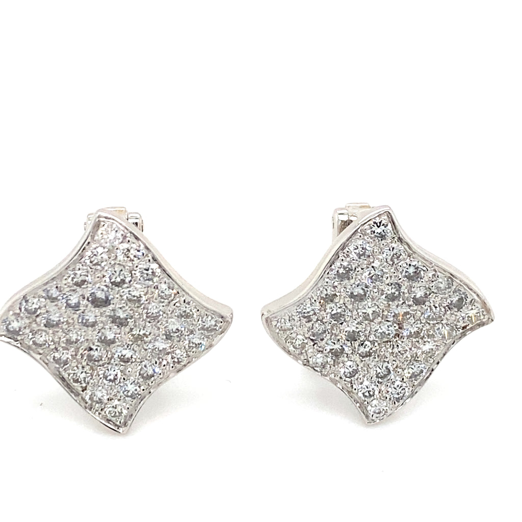 Pre-owned 18ct white gold hallmarked pair of earrings pave set with Diamonds. For pierced ears