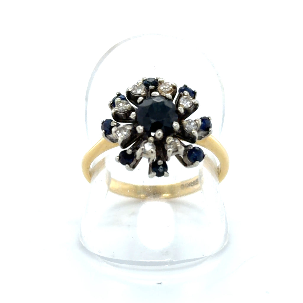 Pre-owned 18ct Gold Hallmarked cluster ring set with Sapphires & Diamonds