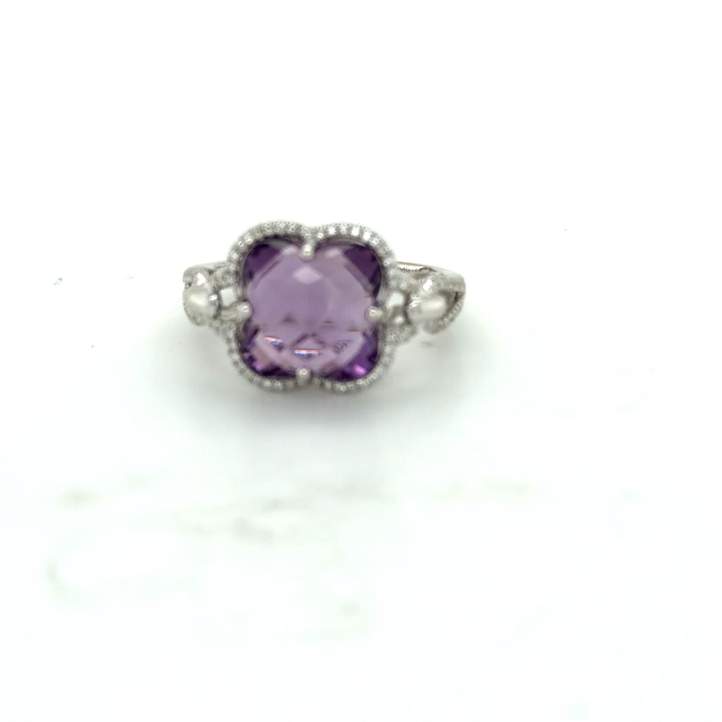 Pre-owned 18ct white gold Amethyst & Diamond cluster ring