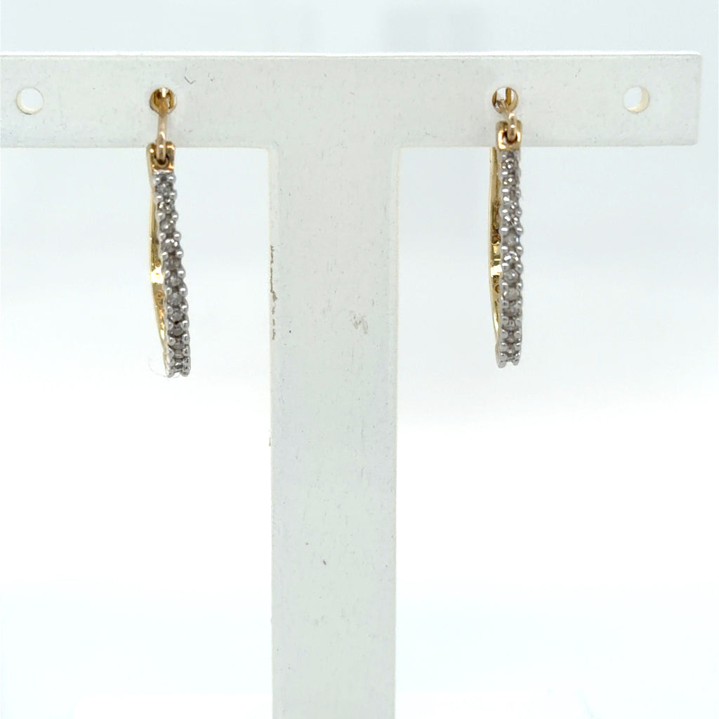 Pre-owned stamped '9k' only pair of hoop earrings set with a total of 28 Diamonds