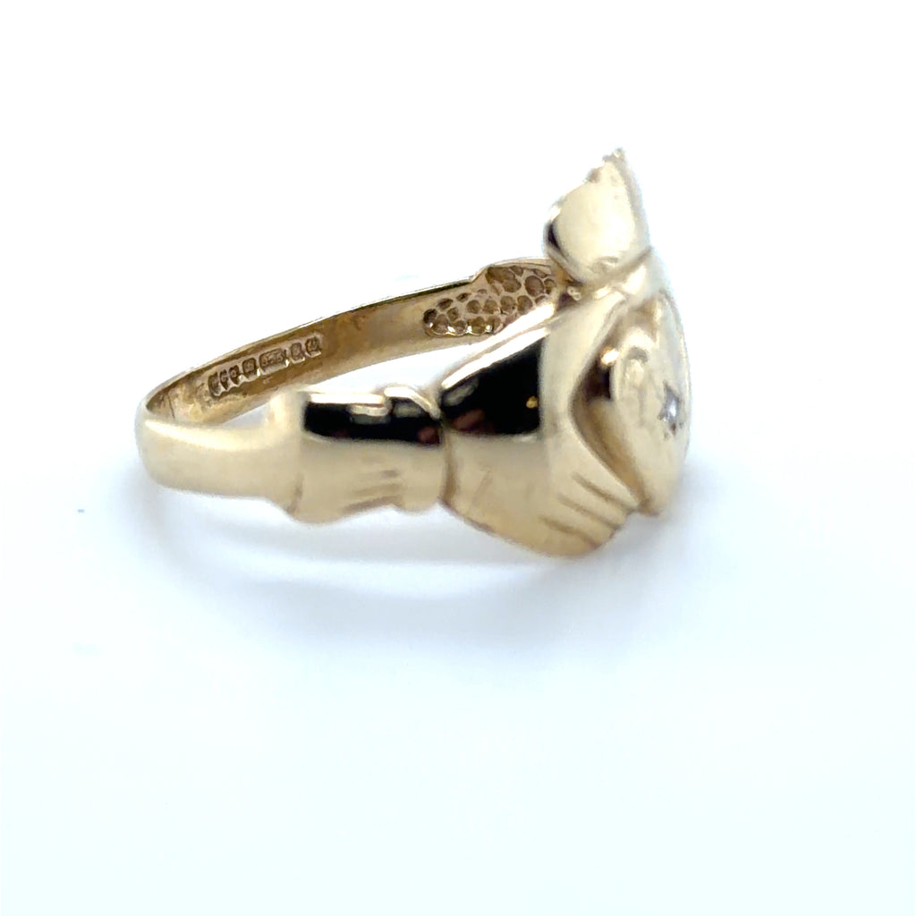 Pre-owned 9ct gold hallmarked Claddagh ring set with Diamond to centre of heart